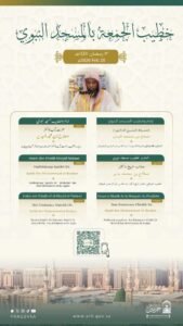 أوضحت رئاسة الشؤون الدينية بالمسجد الحرام والمسجد النبوي، عن أسماء خطيبا وإماما صلاة الجمعة في الحرمين الشريفين 3 رمضان 1447هـ وذلك ضمن جدولها الدوري لتنظيم الإمامة والخطابة.