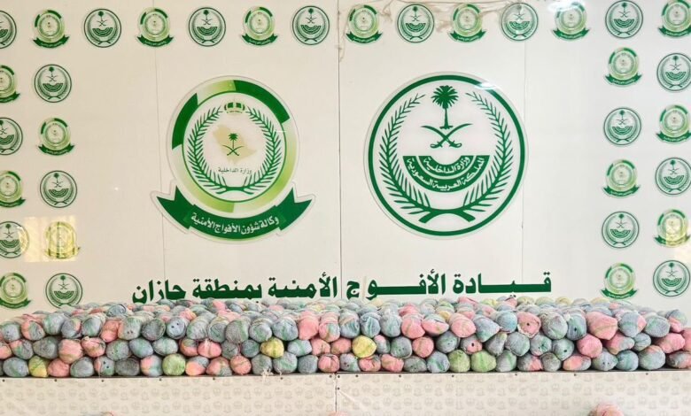 دوريات الأفواج الأمنية بمنطقة جازان تُحبط تهريب 599 كلجم من القات المخدر