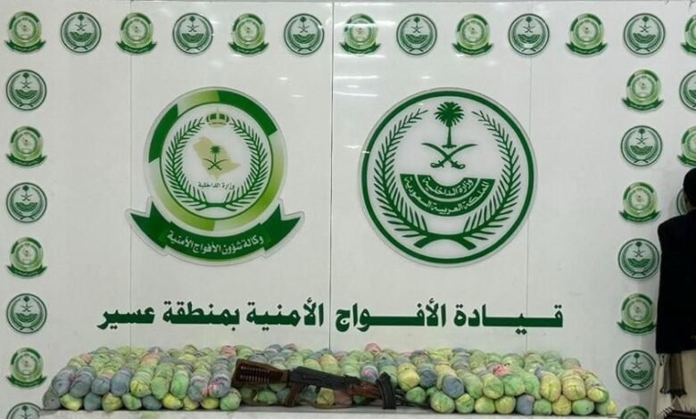 دوريات الأفواج الأمنية بمنطقة عسير تقبض على شخص لترويجه 74 كلجن من القات المخدر