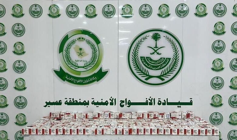 دوريات الأفواج الأمنية بمنطقة عسير تحبط تهريب 59,815 قرصًا خاضعًا لتنظيم التداول الطبي