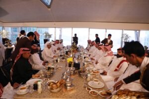 وشهد الحفل تبادلاً للأحاديث الودية في أجواء مفعمة بالروحانية، أمام إطلالة بانورامية مباشرة على المسجد الحرام تعد الأغلى قيمة ومعنى، حيث يرتفع الموقع نحو 480 متراً عن سطح الأرض، مما أضفى على اللقاء طابعاً فريداً يمزج بين ألفة الزملاء وقدسية المكان.