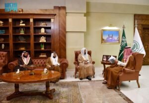 وأستمع سموه خلال الاستقبال إلى شرح عن البرنامج التوعوي “لعلكم تتقون” الذي تنفذه الهيئة بالمحافظة خلال شهر رمضان 1447هـ، الهادف إلى بيان أحكام الصيام وفضائله، وهدي الرسول -صلى الله عليه وسلم- في صيام شهر رمضان، إضافة إلى الأنشطة التوعوية لهيئة الأمر بالمعروف والنهي عن المنكر بالمحافظة.