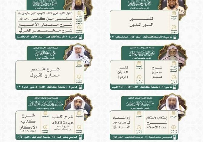 الرئاسة تصدر جدول البرنامج العلمي الدائم بالمسجد الحرام لشهر شوال