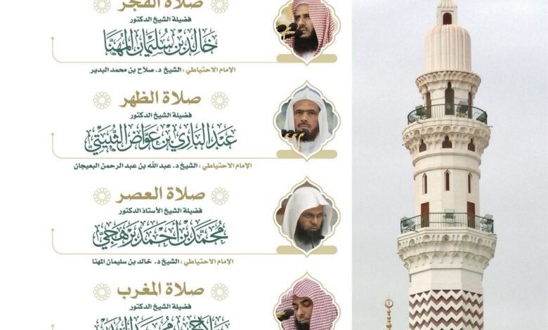 ويأتي إعتماد هذا الجدول في إطار تنظيم شؤون الإمامة بالمسجد الحرام والمسجد النبوي، بما يتيح للمصلين أداء عباداتهم في أجواء روحانية مفعمة بالطمأنينة، وبقيادة أئمةٍ من أهل العلم والخبرة.