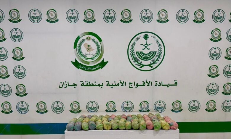دوريات الأفواج الأمنية بمنطقة جازان تُحبط تهريب 53 كلجم من القات المخدر