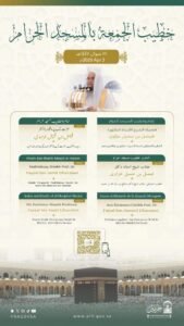 أوضحت رئاسة الشؤون الدينية بالمسجد الحرام والمسجد النبوي أسماء خطيبا وإماما صلاة الجمعة في الحرمين الشريفين ليوم بعد غد الجمعة 15 شوال 1447هـ، وذلك ضمن جدولها الدوري لتنظيم الإمامة والخطابة.