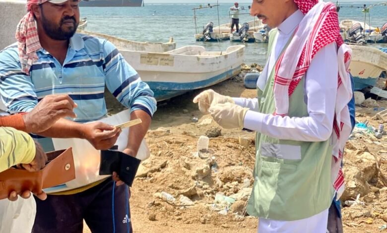 وركّزت الجولة للتأكيد على منع صيد أسماك الناجل والطرادي تزامنًا مع بدء تطبيق قرار حظر صيدها على امتداد ساحل البحر الأحمر اعتبارًا من 1 أبريل ولمدة شهرين، لما لذلك من دور محوري في حماية المخزون السمكي وإتاحة الفرصة لتكاثر هذه الأنواع، بما يدعم استدامة الموارد البحرية، كما شملت الجولة التحقق من التراخيص، ومتابعة جودة المنتجات السمكية المعروضة، والتأكد من الالتزام بالاشتراطات الصحية والبيئية، إلى جانب توعية الصيادين بأهمية التقيد بالتعليمات وتجنّب الممارسات المخالفة.