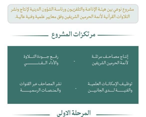 وبيّنت أن المشروع يجسد التكامل المؤسسي في خدمة كتاب الله تعالى، ويعكس توظيف الإمكانات الإعلامية والتقنية الحديثة لإيصال التلاوات القرآنية بجودة عالية إلى مختلف شرائح المستمعين داخل المملكة وخارجها، بما يعزز حضور رسالة الحرمين الشريفين الوسطية عالميًا.